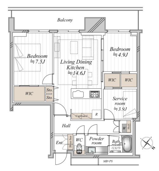 間取内容 | LDK14.6帖 洋室7.5帖 洋室4.9帖 S3.9帖 | ||