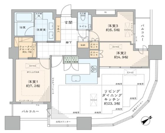 間取内容 | LDK23.3帖 洋室7.2帖 洋室5.5帖 洋室4.9帖 | ||