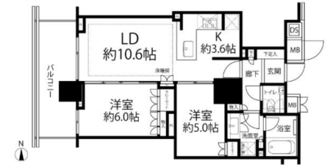 | 間取内容 | LD10.6帖 K3.6帖 洋室6帖 洋室5帖 | ||
