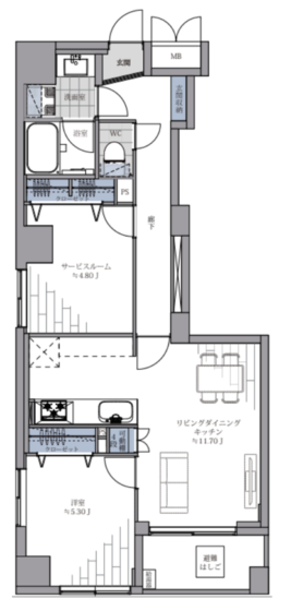 | 間取内容 | LDK11.7帖 洋室5.3帖 S4.8帖 | ||