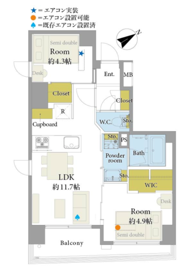 間取内容 | LDK11.7帖 洋室4.9帖 洋室4.3帖 | ||