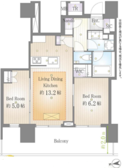 間取内容 | LDK13.2帖 洋室6.2帖 洋室5帖 2LDK+トランクルーム+SIC+WIC |