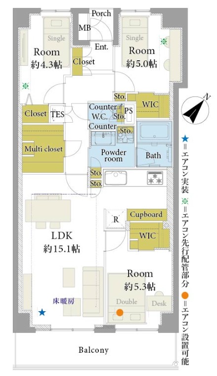 間取内容 | LDK15.1帖 洋室5.4帖 洋室4.3帖 洋室5.0帖 | ||