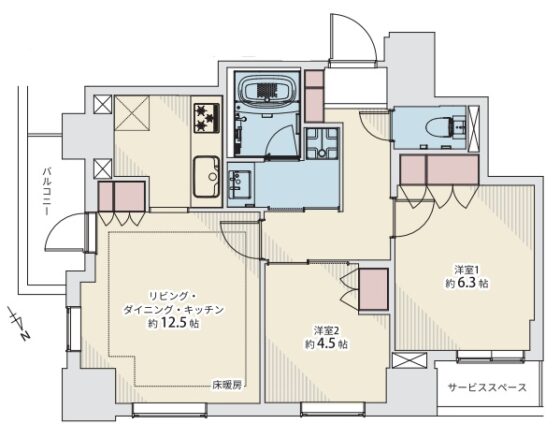 間取内容 | LDK12.5帖 洋室6.3帖 洋室4.5帖 | ||