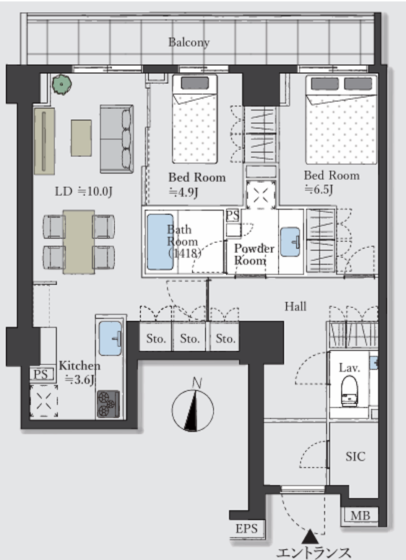 間取内容 | LD10帖 洋室6.5帖 洋室4.9帖 | ||