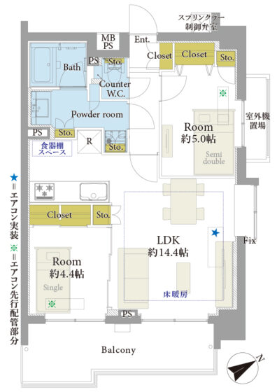 間取内容 | LDK14.4帖 洋室5帖 洋室4.4帖 洋室 2LDK+3Closet |