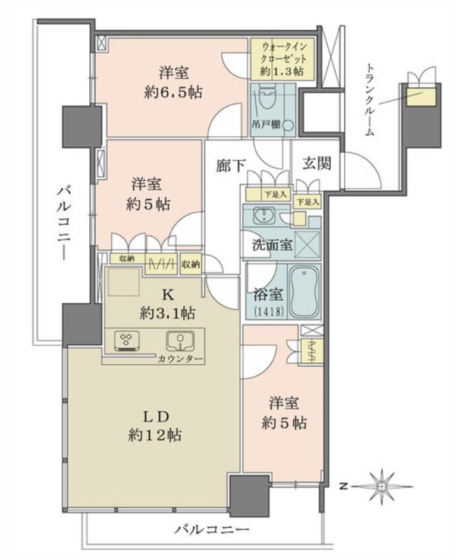 間取内容 | LD12帖 K3.1帖 洋室6.5帖 洋室5帖 洋室5帖 | ||