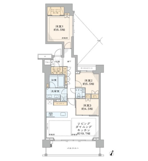 間取内容 | LDK19.7帖 洋室8.5帖 洋室5.5帖 洋室4.5帖 | ||