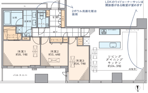| 間取内容 | LDK24.3帖 洋室8.1帖 洋室6.7帖 洋室5.4帖 | ||