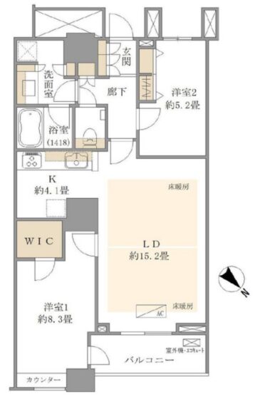 | 間取内容 | LD15.2帖 K4.1帖 洋室8.3帖 洋室5.2帖 | ||