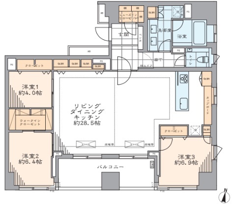 | 間取内容 | LDK28.5帖 洋室6.9帖 洋室6.4帖 洋室4.0帖 | ||