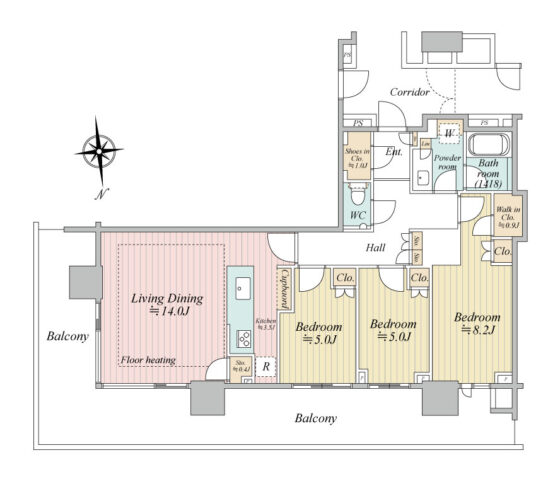 ◆3部屋とLDKがバルコニーに面するワイドスパン