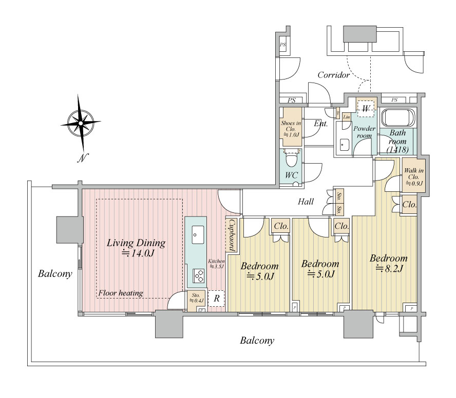 | 間取内容 | LD14.0帖 K3.5帖 洋室8.2帖 洋室5帖 洋室5帖 | ||