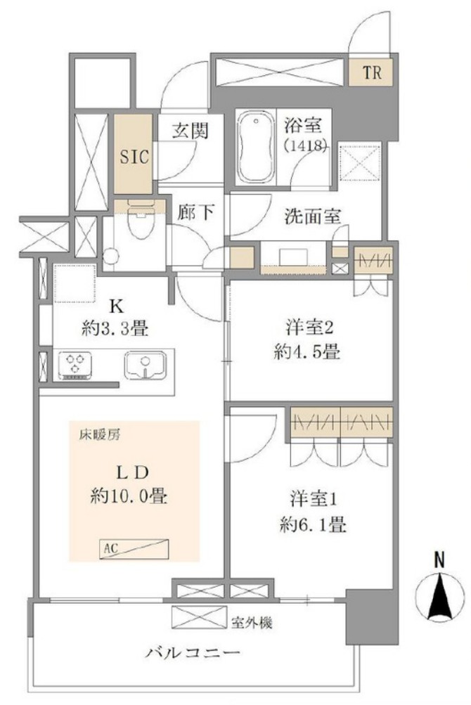 | 間取内容 | LD10.0帖 K3.3帖 洋室6.1帖 洋室4.5帖 | ||