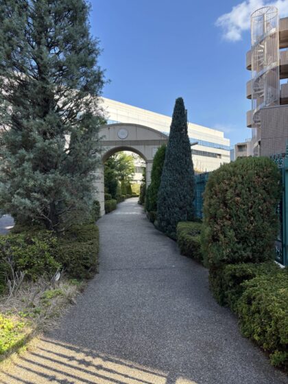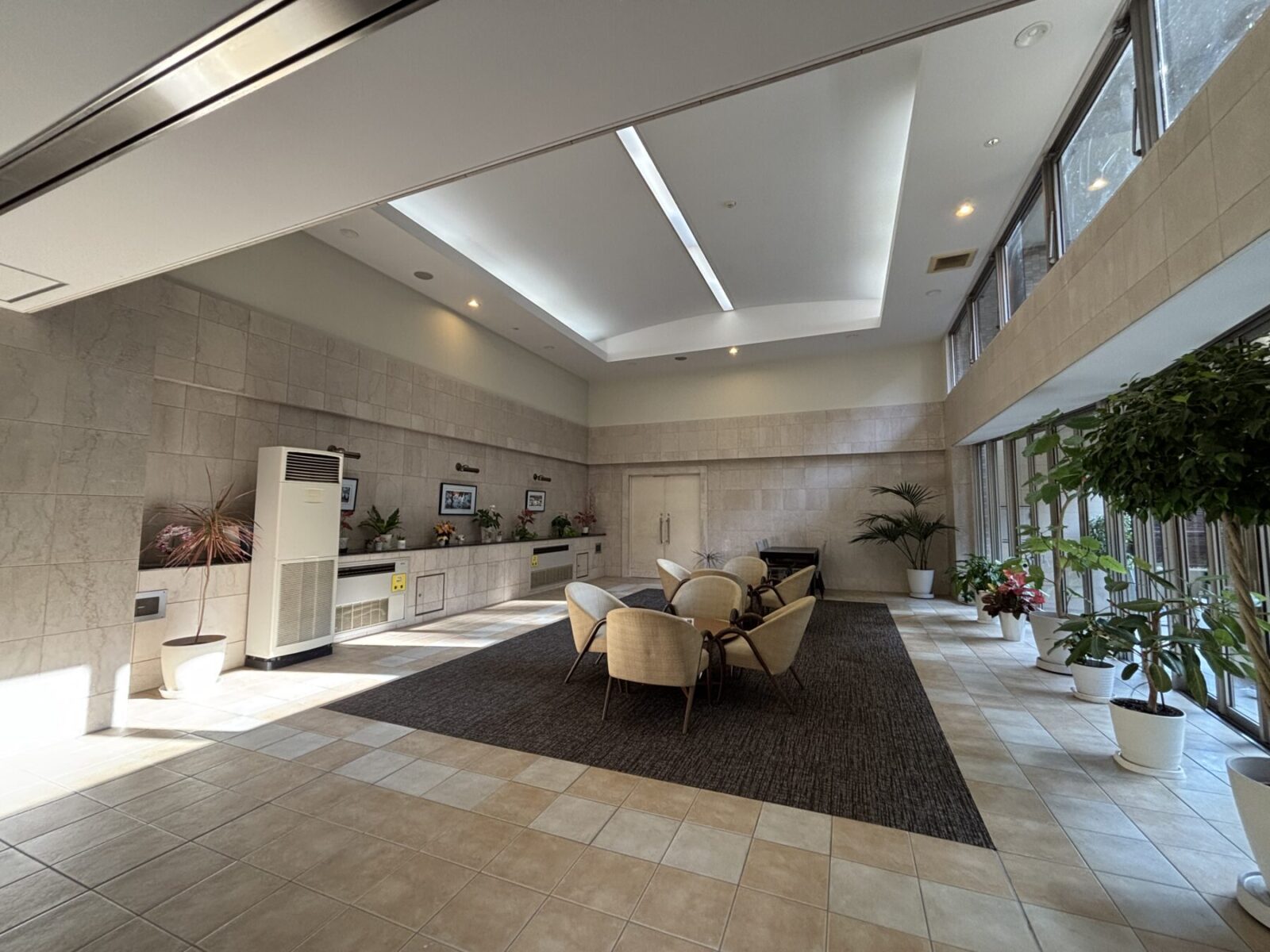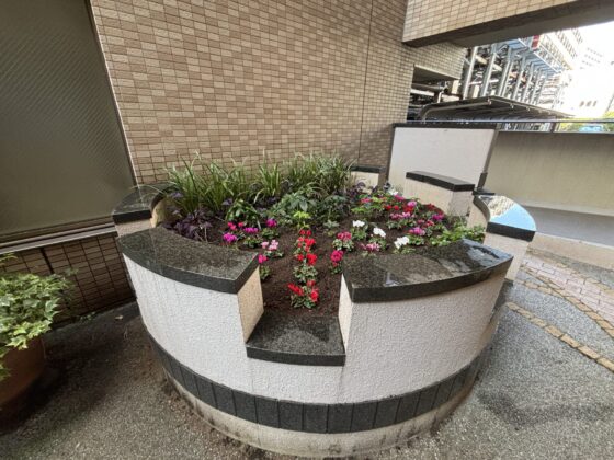 中庭に庭園あり、四季折々の花木があり、住民を温かく歓迎