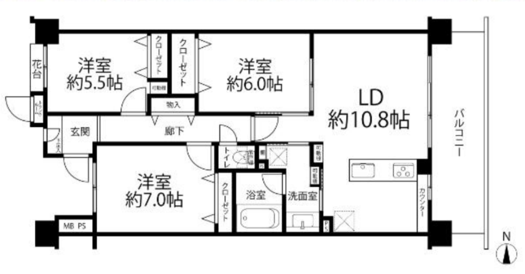 | 間取内容 | LDK10.8帖 洋室7帖 洋室6帖 洋室5.5帖 | ||