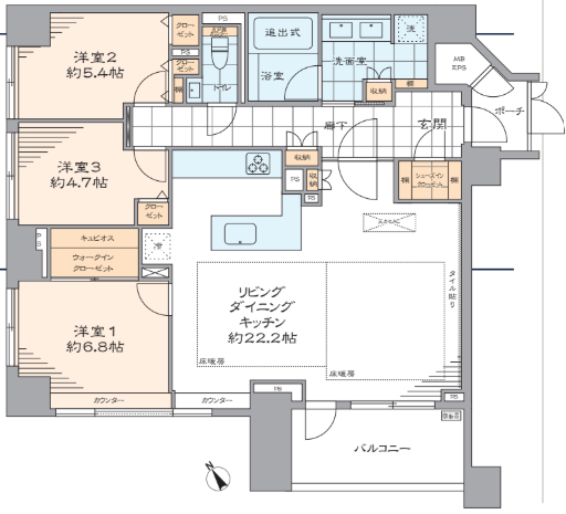 | 間取内容 | LDK22.2帖 洋室6.8帖 洋室5.4帖 洋室4.7帖 | ||