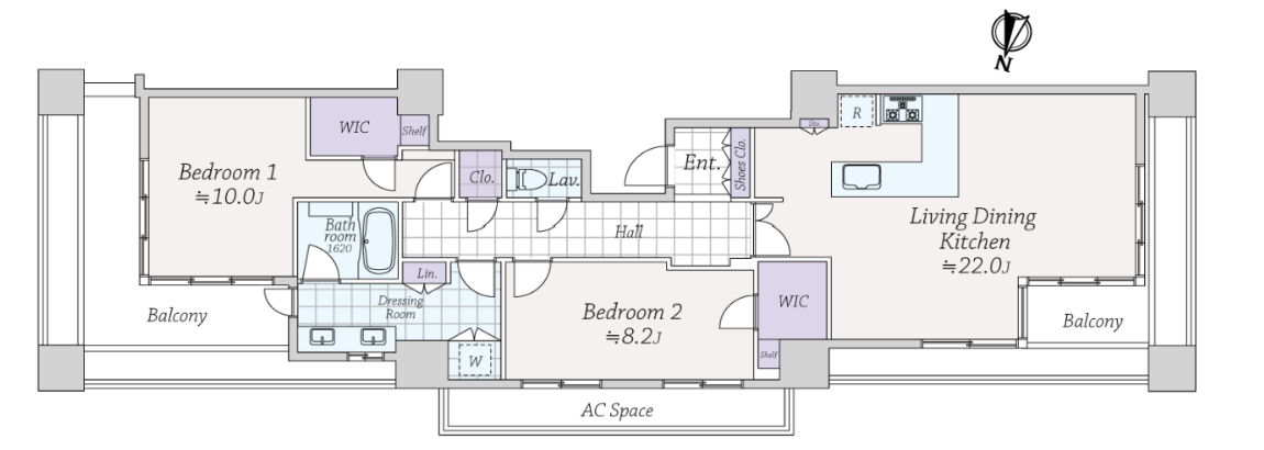 16階 2LDK 102.26㎡ 北・西・東三方向角住戸