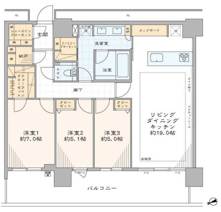| 間取内容 | LDK19.0帖 洋室7.1帖 洋室5.1帖 洋室5.0帖 | ||