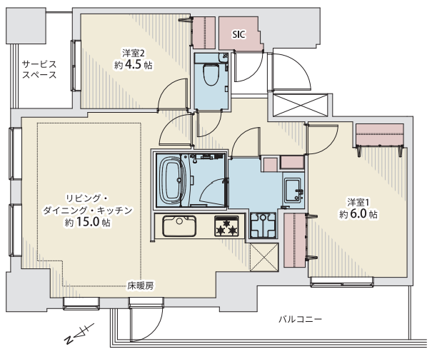 | 間取内容 | LDK15.0帖 洋室6.0帖 洋室4.5帖 | ||