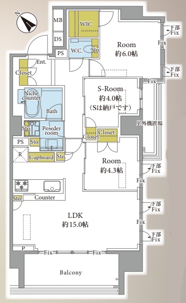| 間取内容 | LDK15帖 洋室6.0帖 洋室4.3帖 S4.0帖 | ||