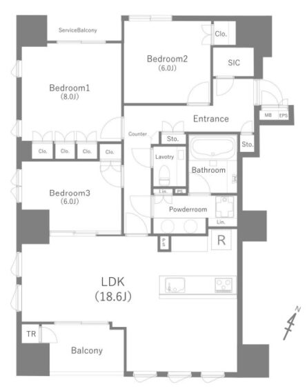 | 間取内容 | LDK18.6帖 洋室8.0帖 洋室6.0帖 洋室6.0帖 | ||