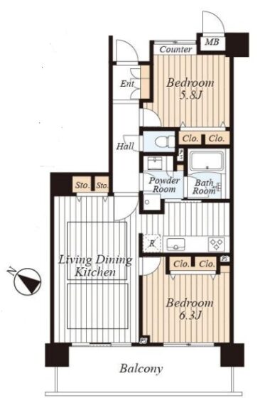 | 間取内容 | LDK洋室6.3 帖 洋室5.8帖 | ||