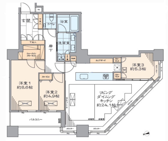 | 間取内容 | LDK24.1帖 洋室8.6帖 洋室4.9帖 洋室5.3帖 | ||