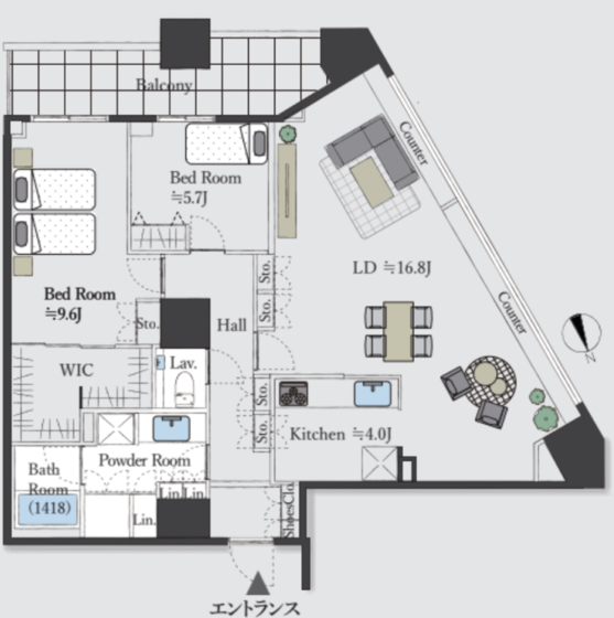 | 建物階数 | 地上53階地下2階 | 所在階 | 18階 |