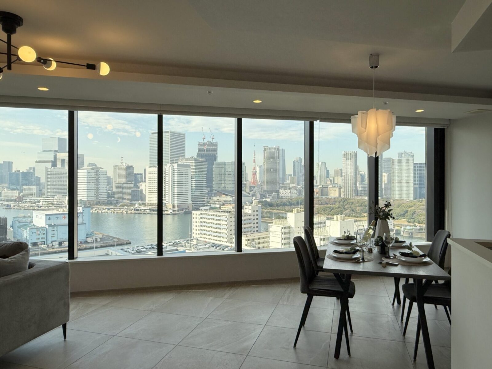 リビングから東京タワー、浜離宮庭園を望むことができ、眺望良好!