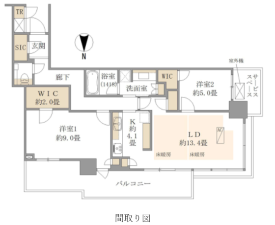 | 間取内容 | LDK13.4帖 洋室9.0帖 洋室5.0帖 | ||