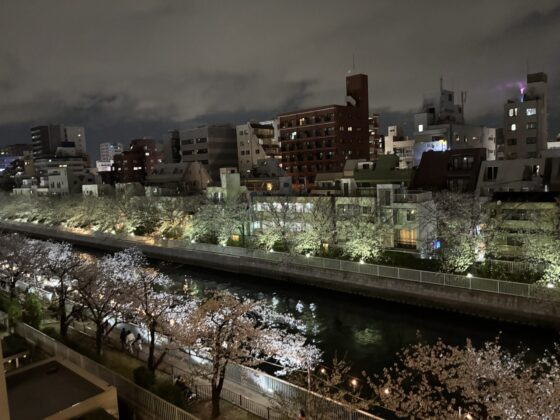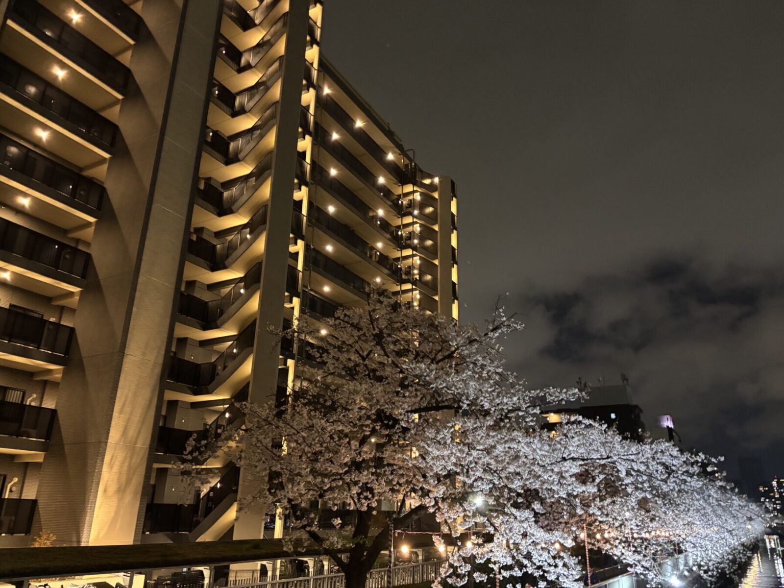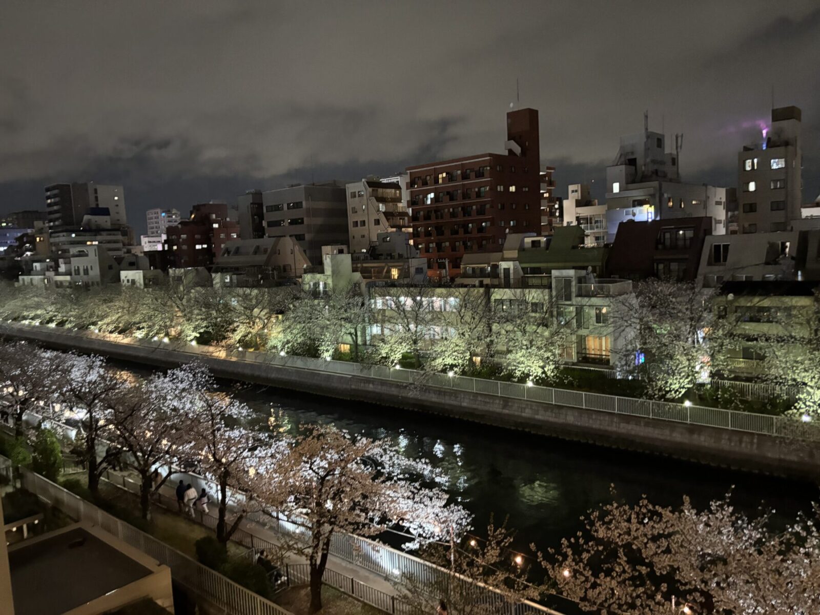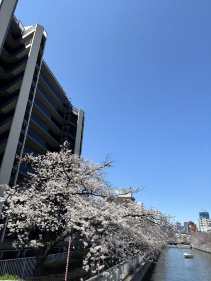 桜のシーズンには目の前を流れる大横川には桜が咲き誇ります。