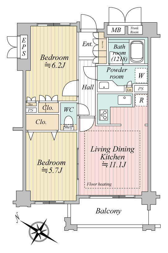 | 間取内容 | LDK11.1帖 洋室6.2帖 洋室5.7帖 | ||