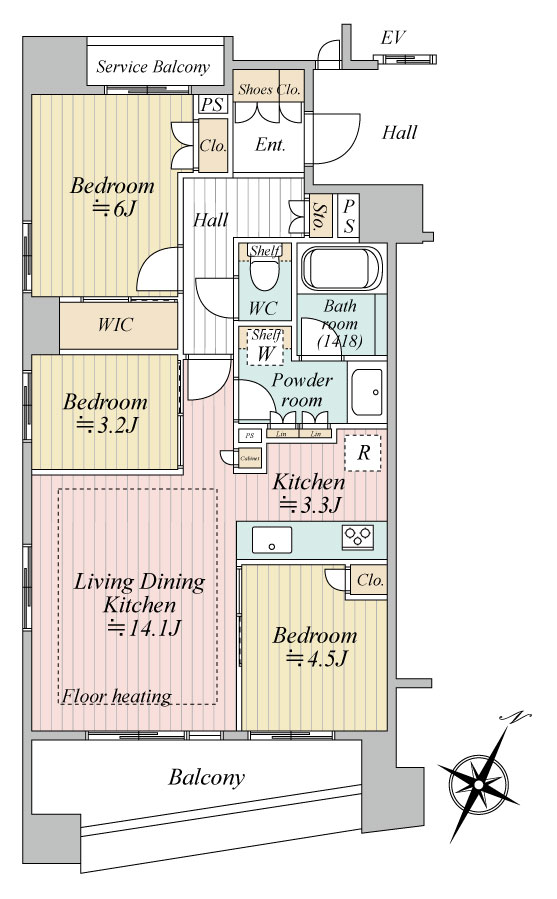 | 間取内容 | LDK14.1帖 洋室6帖 洋室4.5帖 洋室3.2帖 | ||