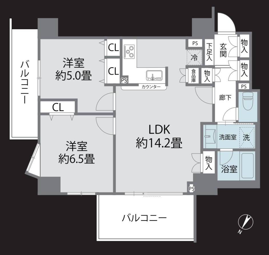 | 間取内容 | LDK14.2帖 洋室6.5帖 洋室5.0帖 | ||