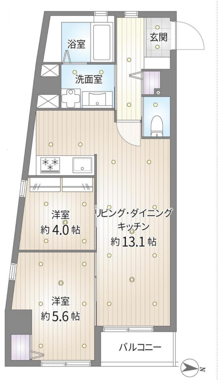 | 間取内容 | LDK13.1帖 洋室5.6帖 洋室4.0帖 | ||