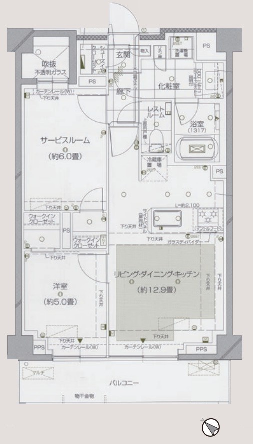 | 間取内容 | LDK12.9帖 洋室5.0帖 S6.0帖 1SLDK+2WIC+SIC |
