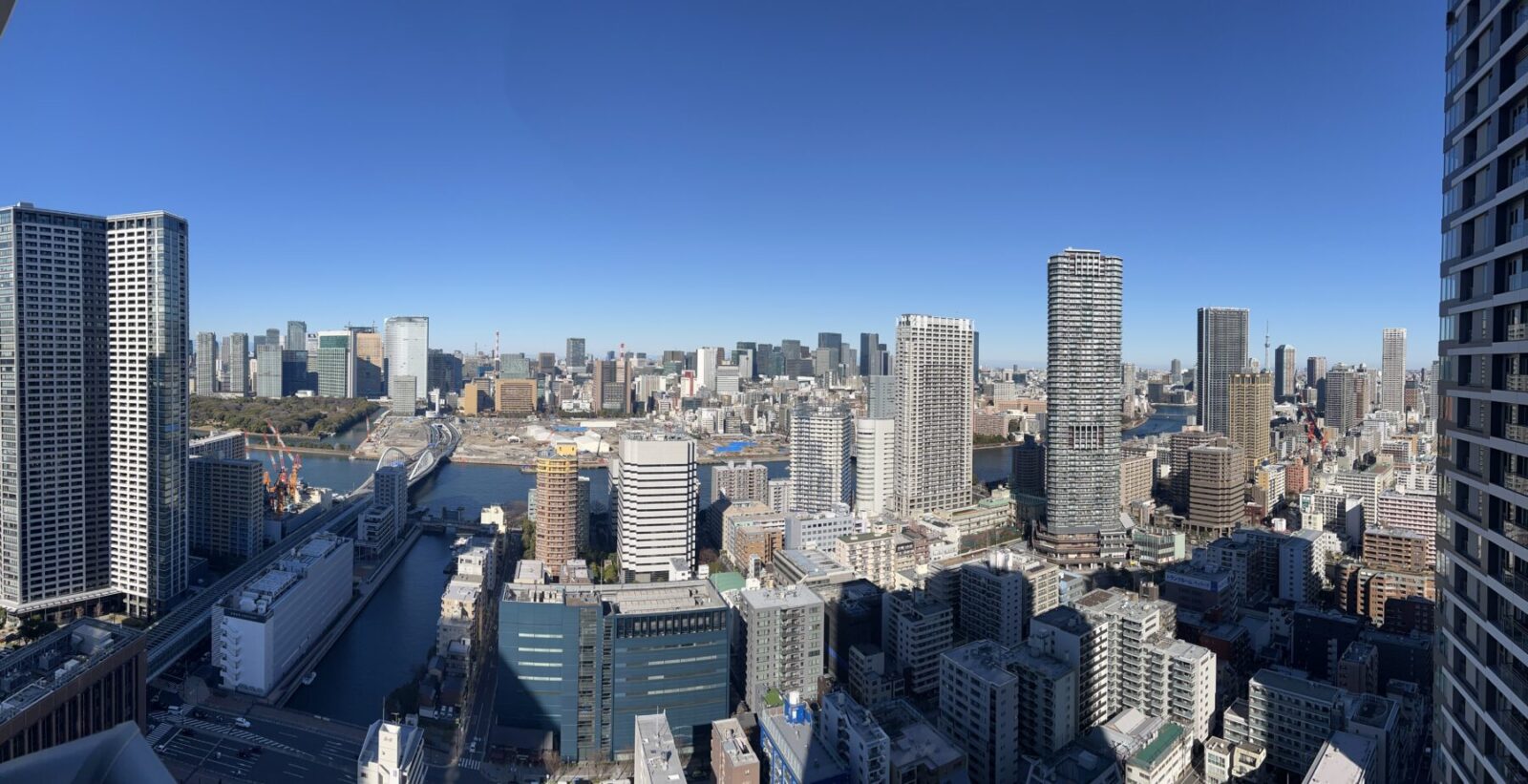 また、西方向には築地市場跡地や浜離宮恩賜庭園方面を望む眺望も楽しめます。