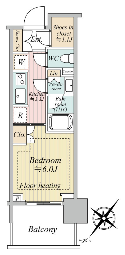 | 間取内容 | 洋室6.0帖 K3.3帖 | ||