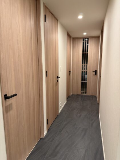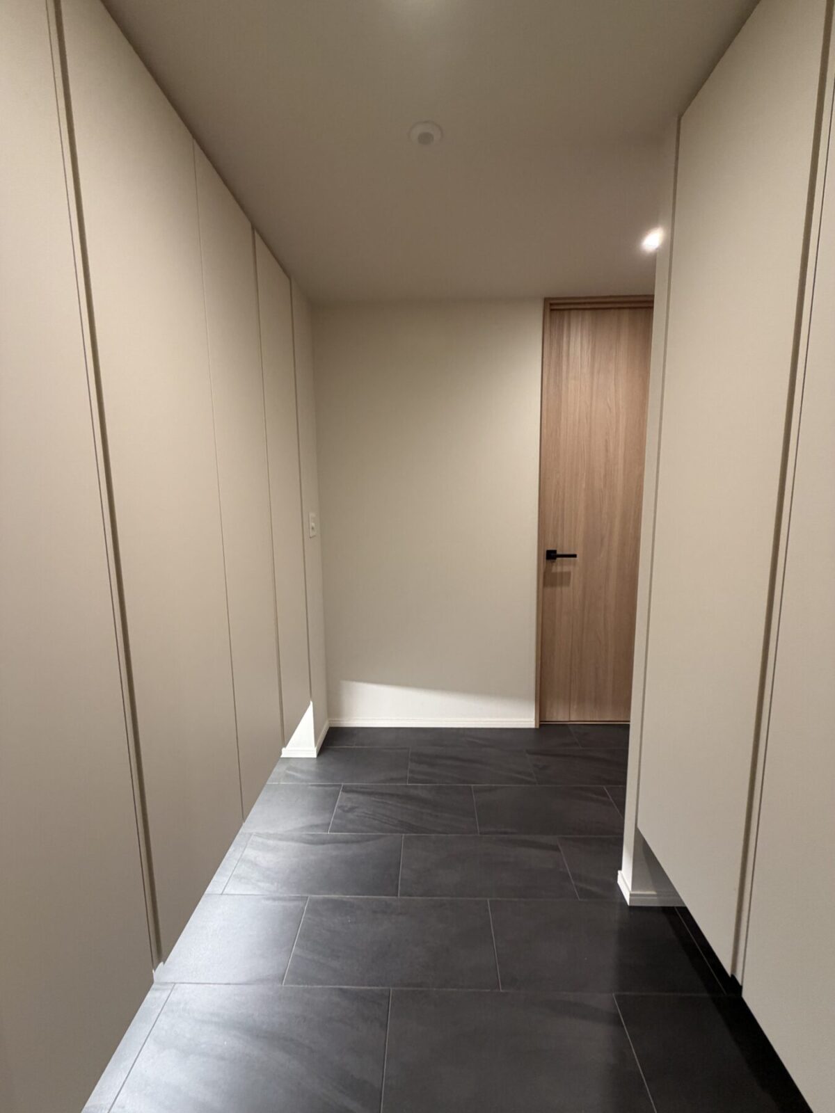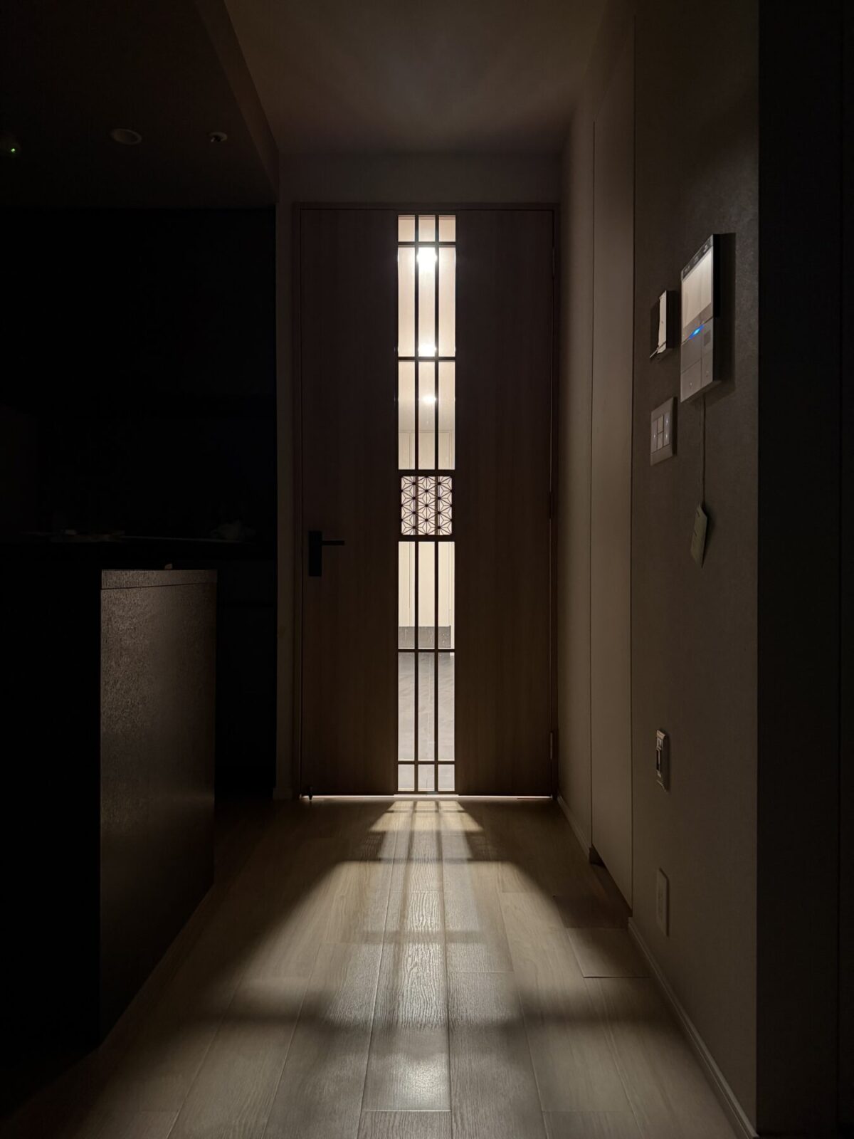 トレンドカラーのジャパニーズモダン。廊下タイル張り(オプション)