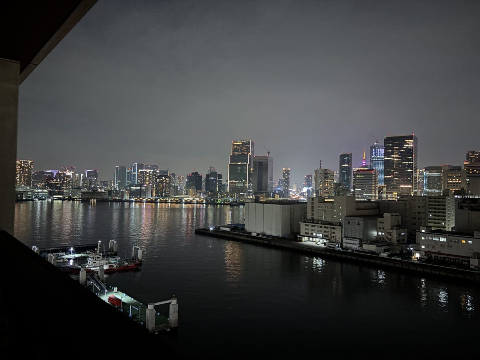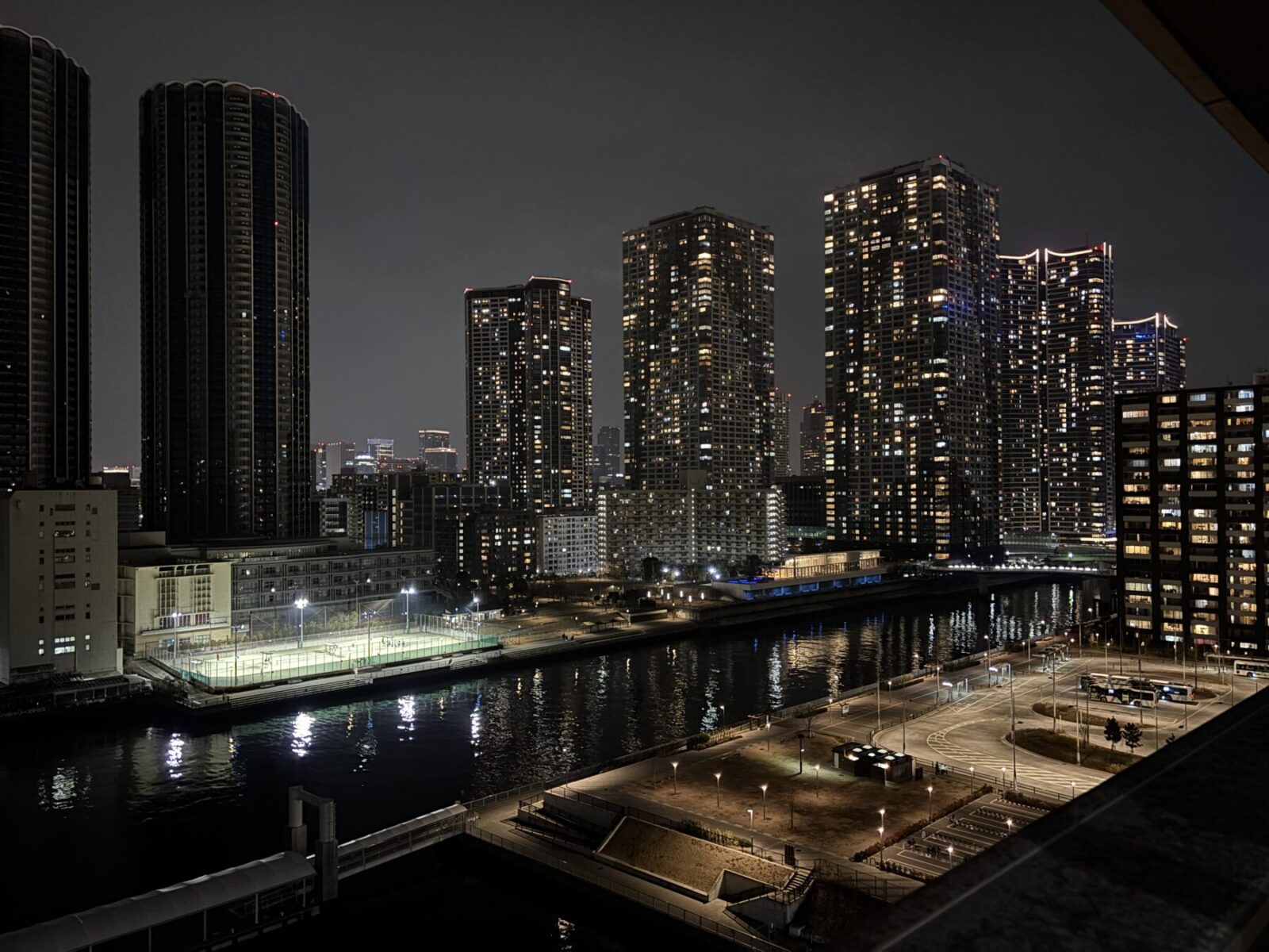 クリアガラスで朝潮運河・勝どき・都心方面を望む眺望(夜景)