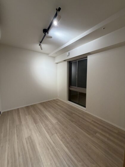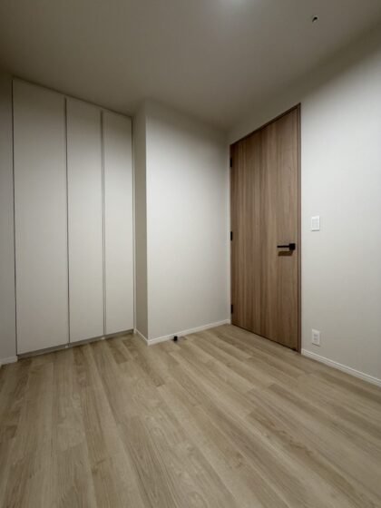 横長の六畳寝室は使いやすく。通路から離れているためプライバシー性も良好です