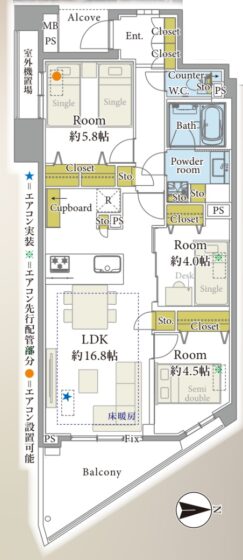 | 間取内容 | LDK16.8帖 洋室5.8帖 洋室4.5帖 洋室4.0帖 | ||