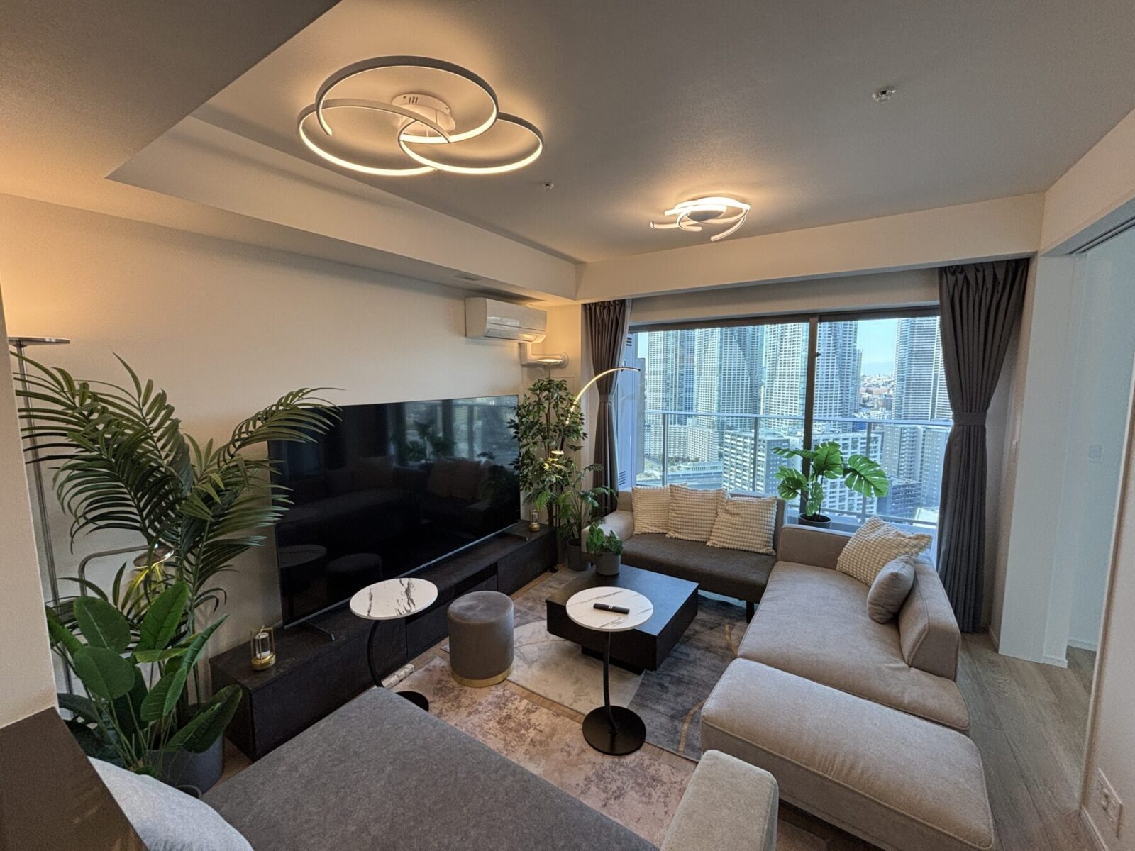○ 家具付き住戸(TV、ソファー、照明、冷蔵庫、洗濯機、エアコン等フルセット)