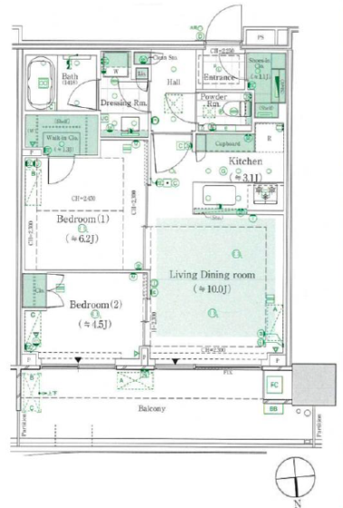 | 間取内容 | LDK13.1帖 洋室6.2帖 洋室4.5帖 | ||