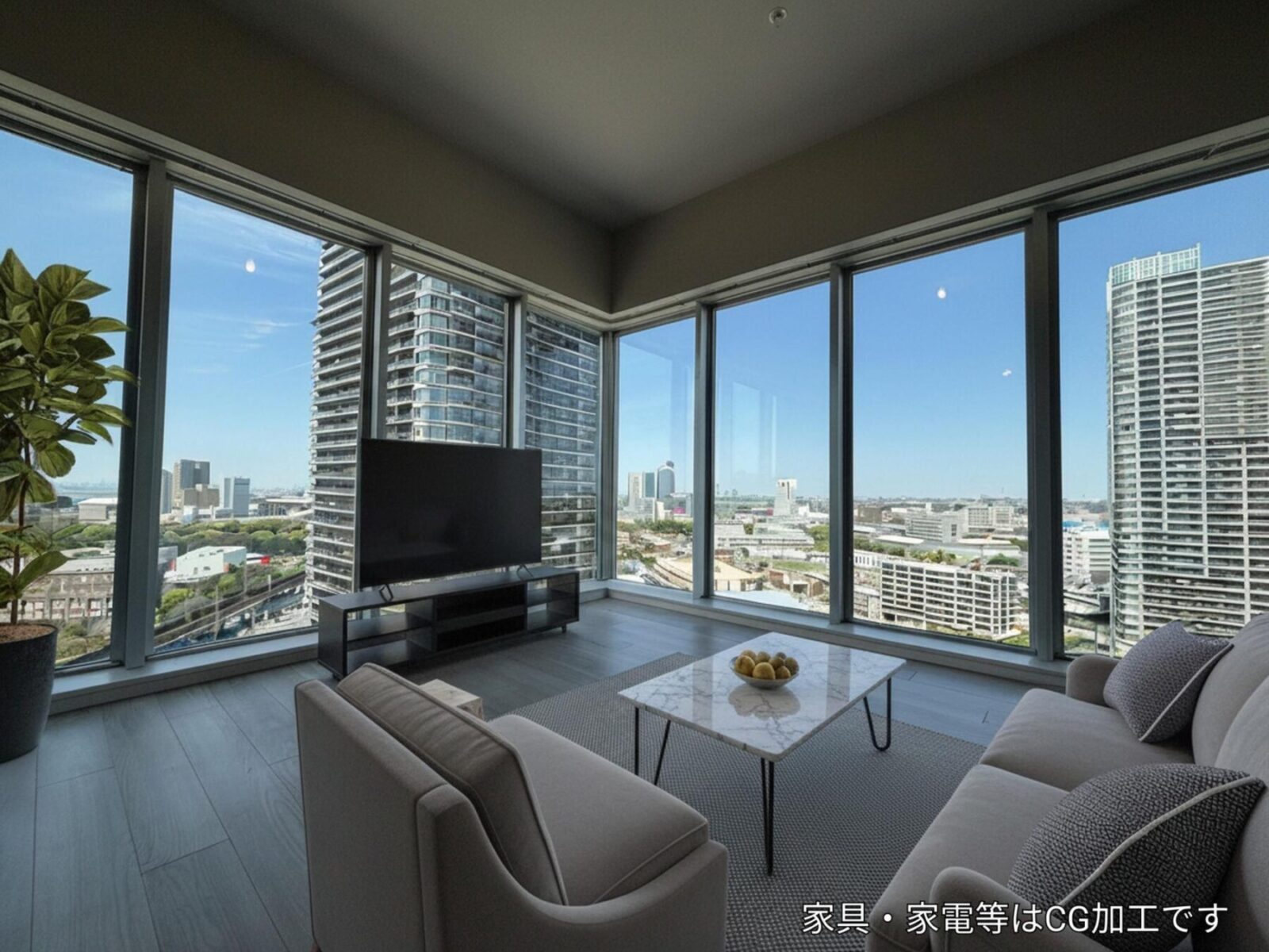 北側は公園を臨み、西側には海が臨めます