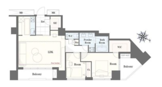 2LDK 北東向き