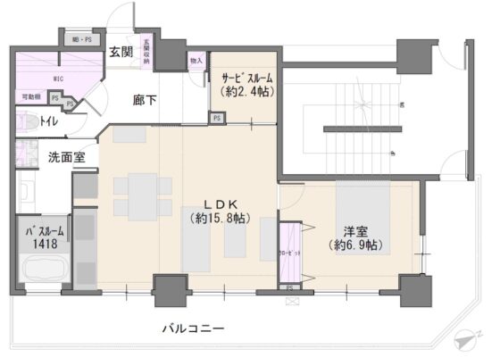 | 間取内容 | LDK15.8帖 洋室6.9帖 S2.4帖 | ||