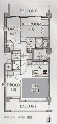 | 間取内容 | LD12.3帖 洋室7.4帖 洋室6.1帖 洋室5.2帖 | ||