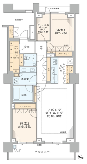| 間取内容 | LDK16.6帖 洋室7.2帖 洋室6.5帖 S3.1帖 | ||